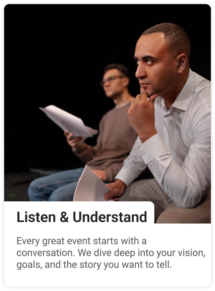 Behind every seamless event is a proven process built on creativity, communication, and an obsessive focus on getting every detail right.
