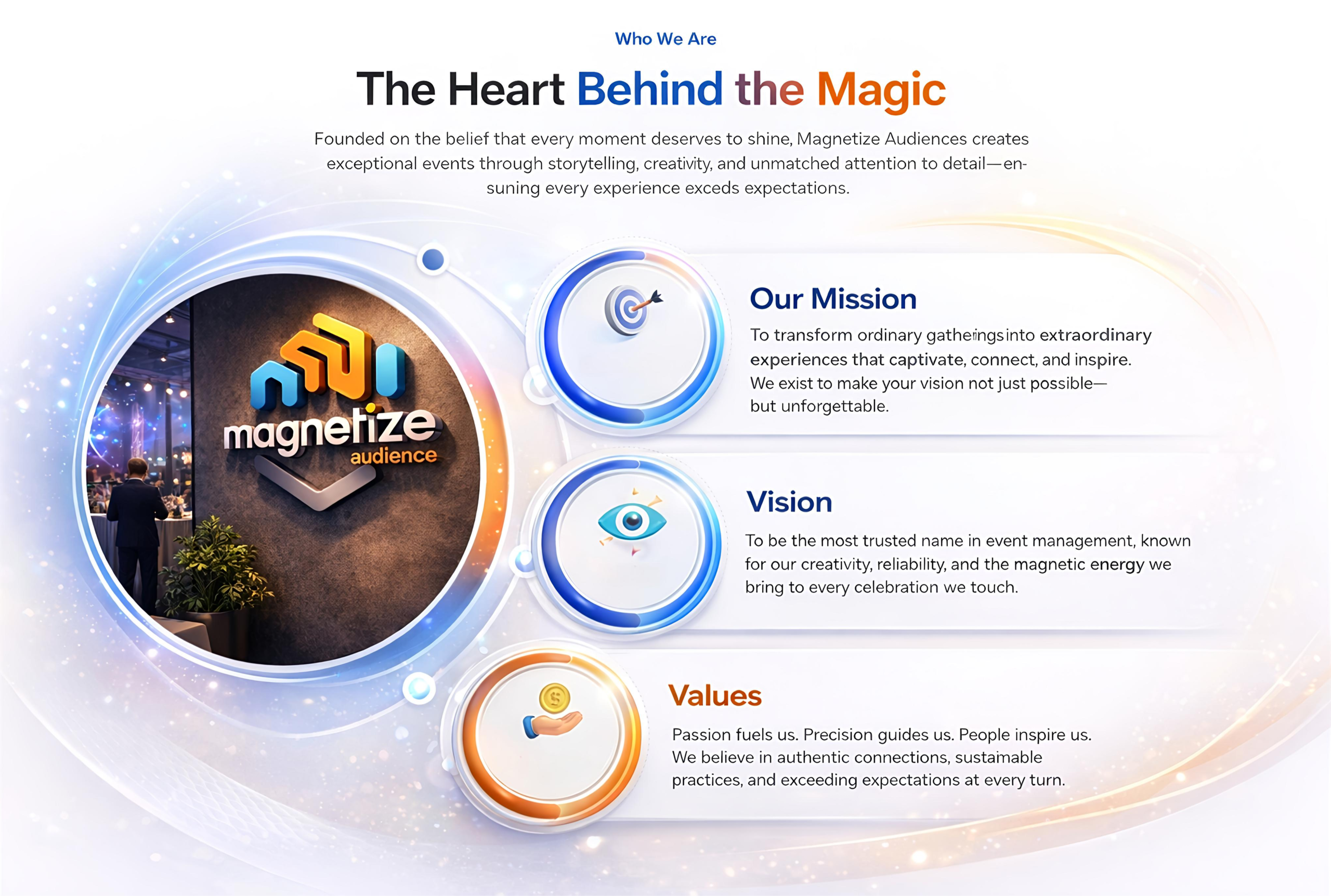 Magnetize Audiences is a professional event management company delivering exceptional experiences for enterprises.